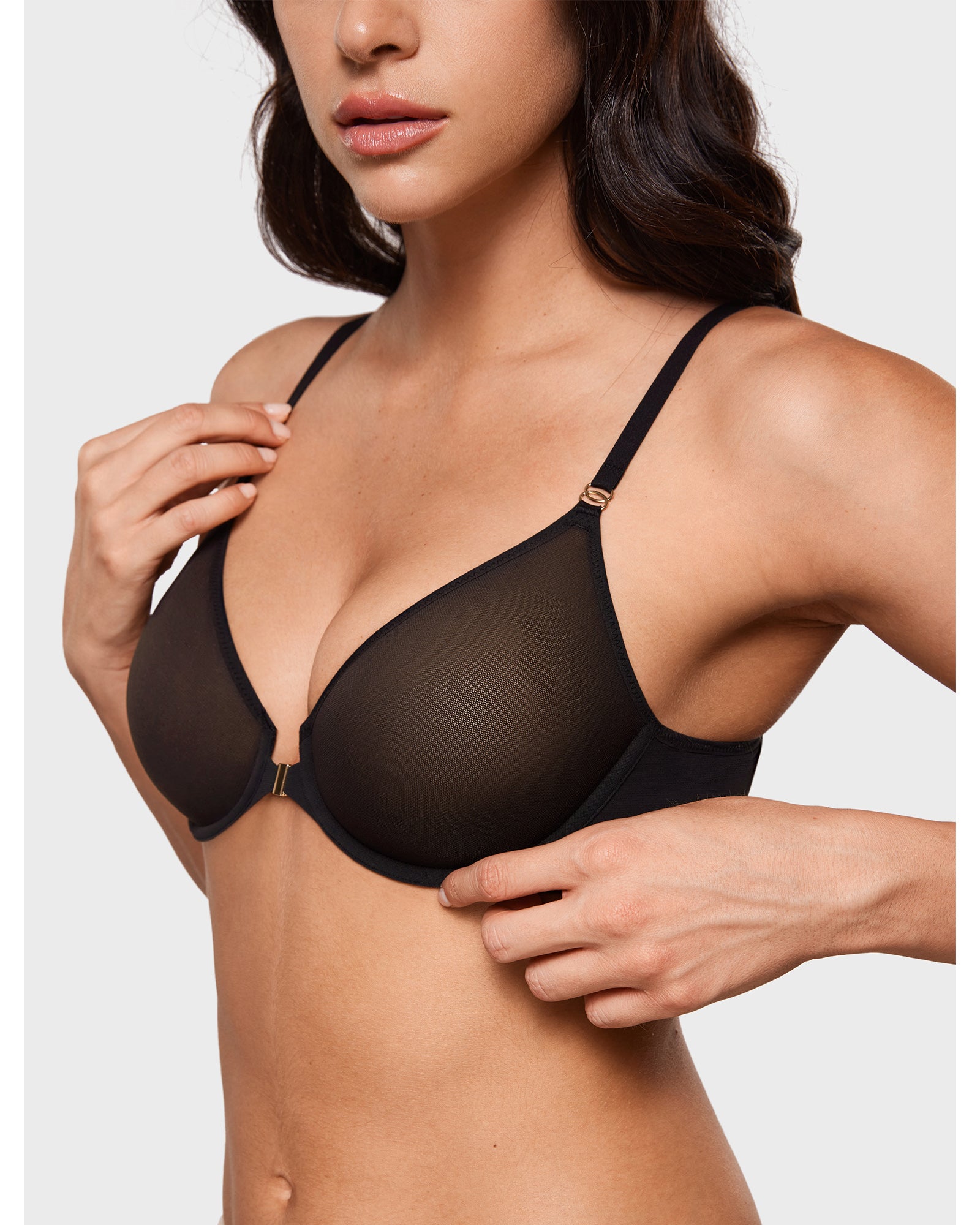 It's designed for effortless allure. Its soft mesh and front closure offer a seamless blend of comfort and support. With unlined cups for a light lift and adjustable straps, it's the perfect blend of style and sustenance. Pair it with low-cut attire for a chic, plunging neckline. Elevate your lingerie drawer with Cosnufy®'s blend of sophistication and ease.