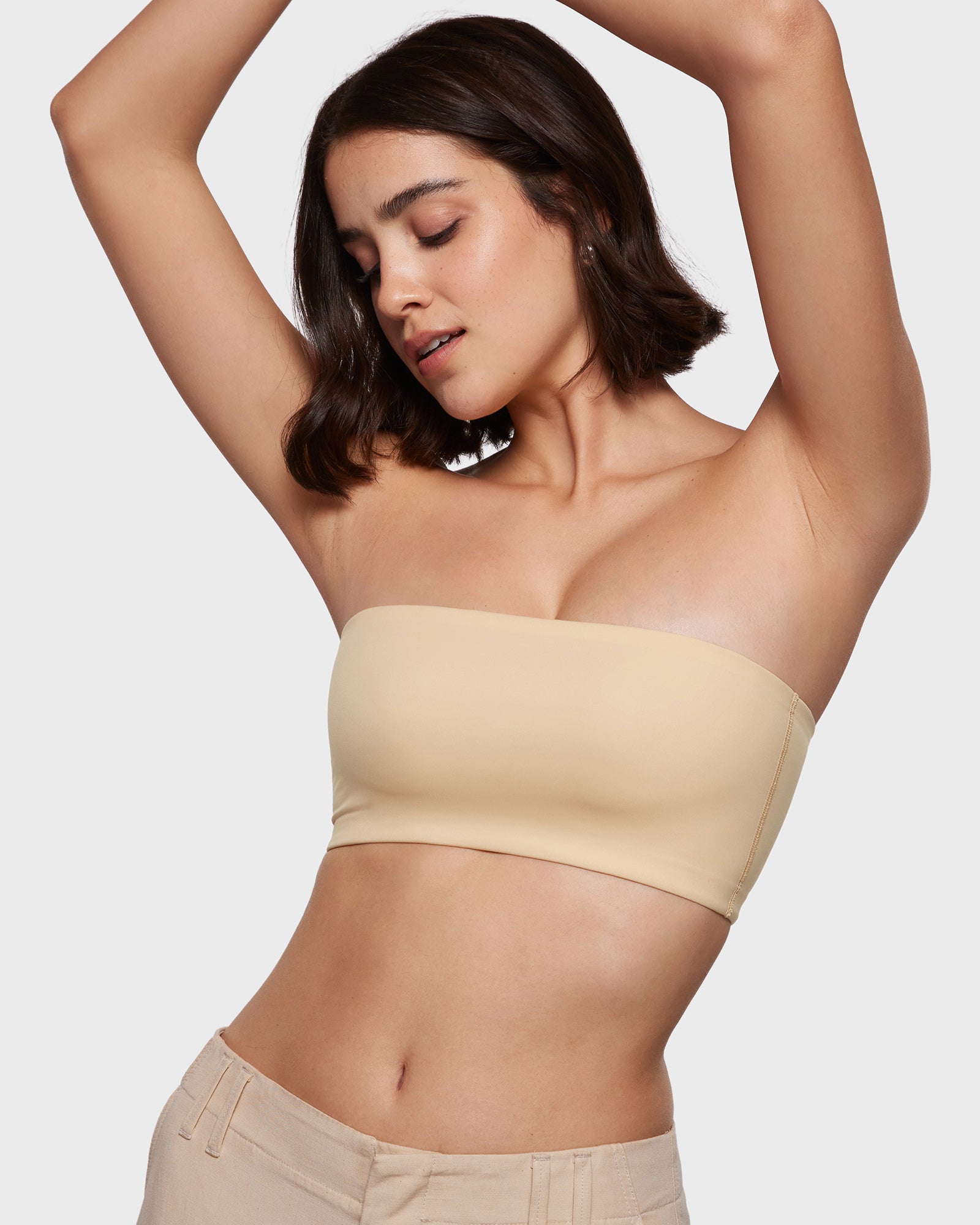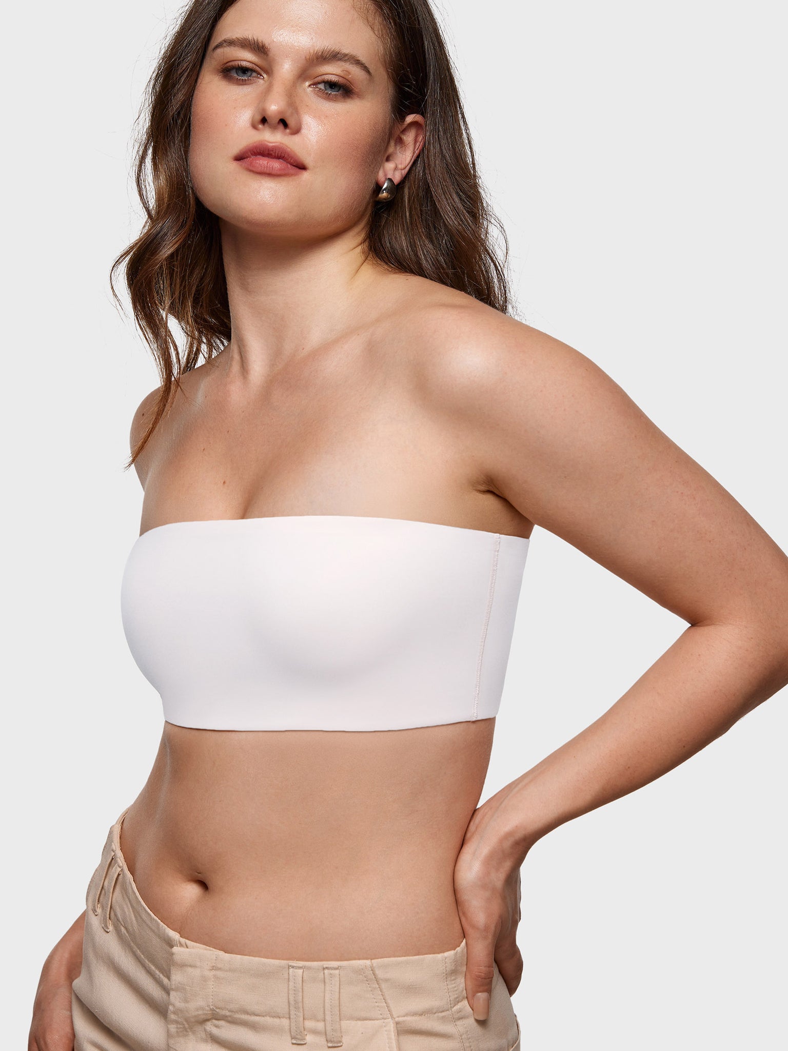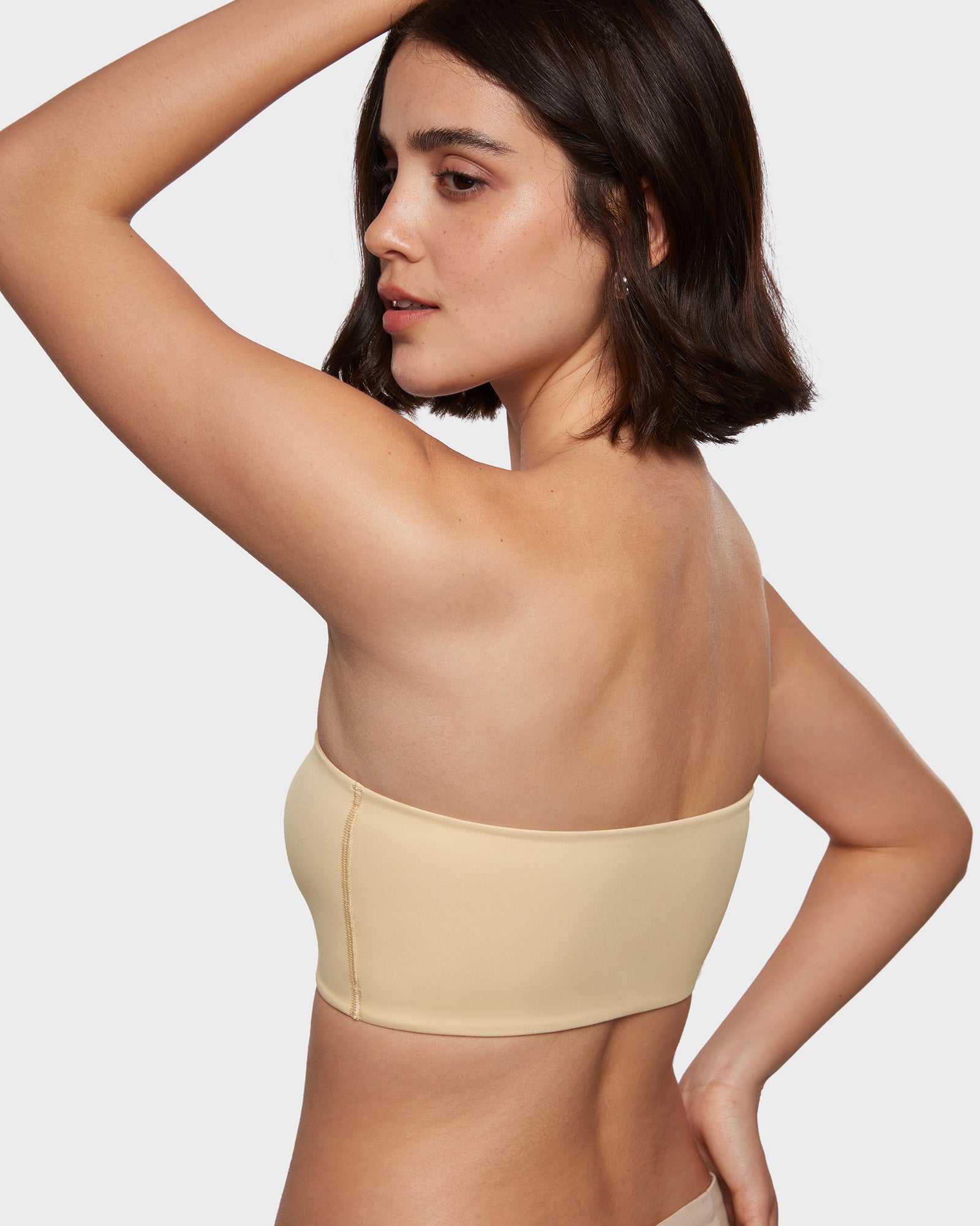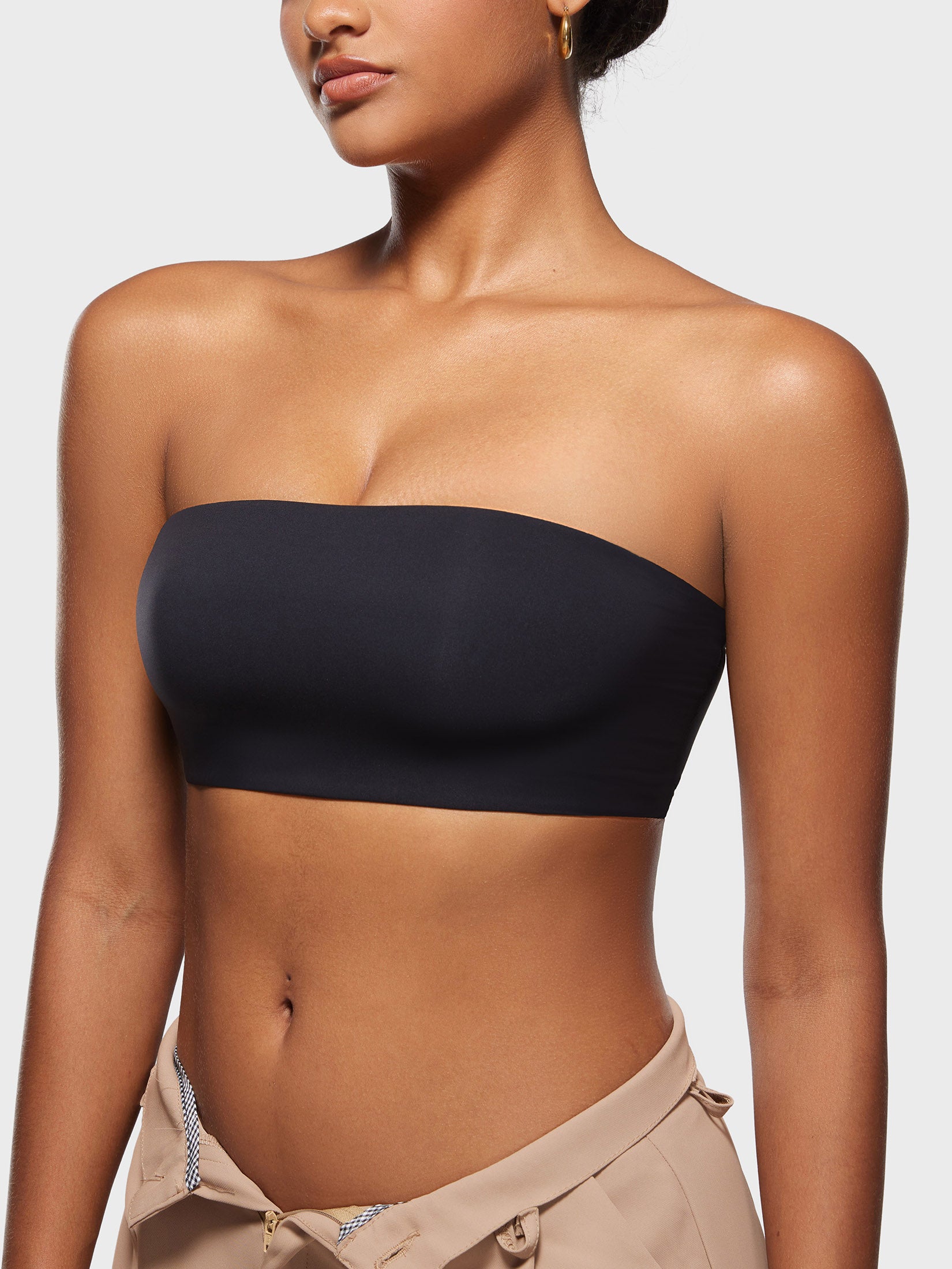 This strapless unlined bras for women is made of three-layered high-stretch fabric that stretch with your body and won't see through,with a mesh layer in the middle designed to provide better support and stability.