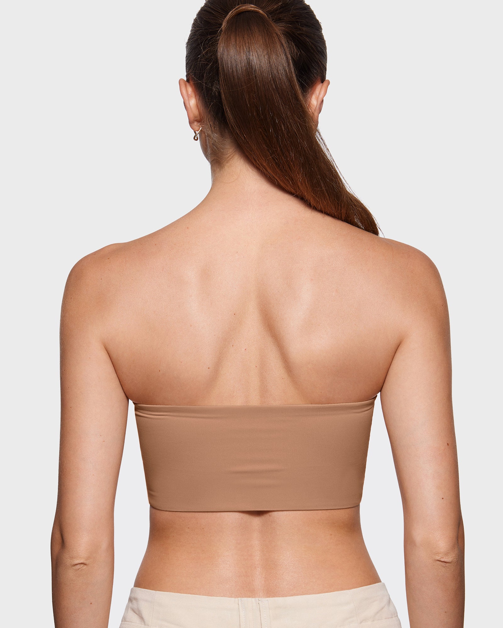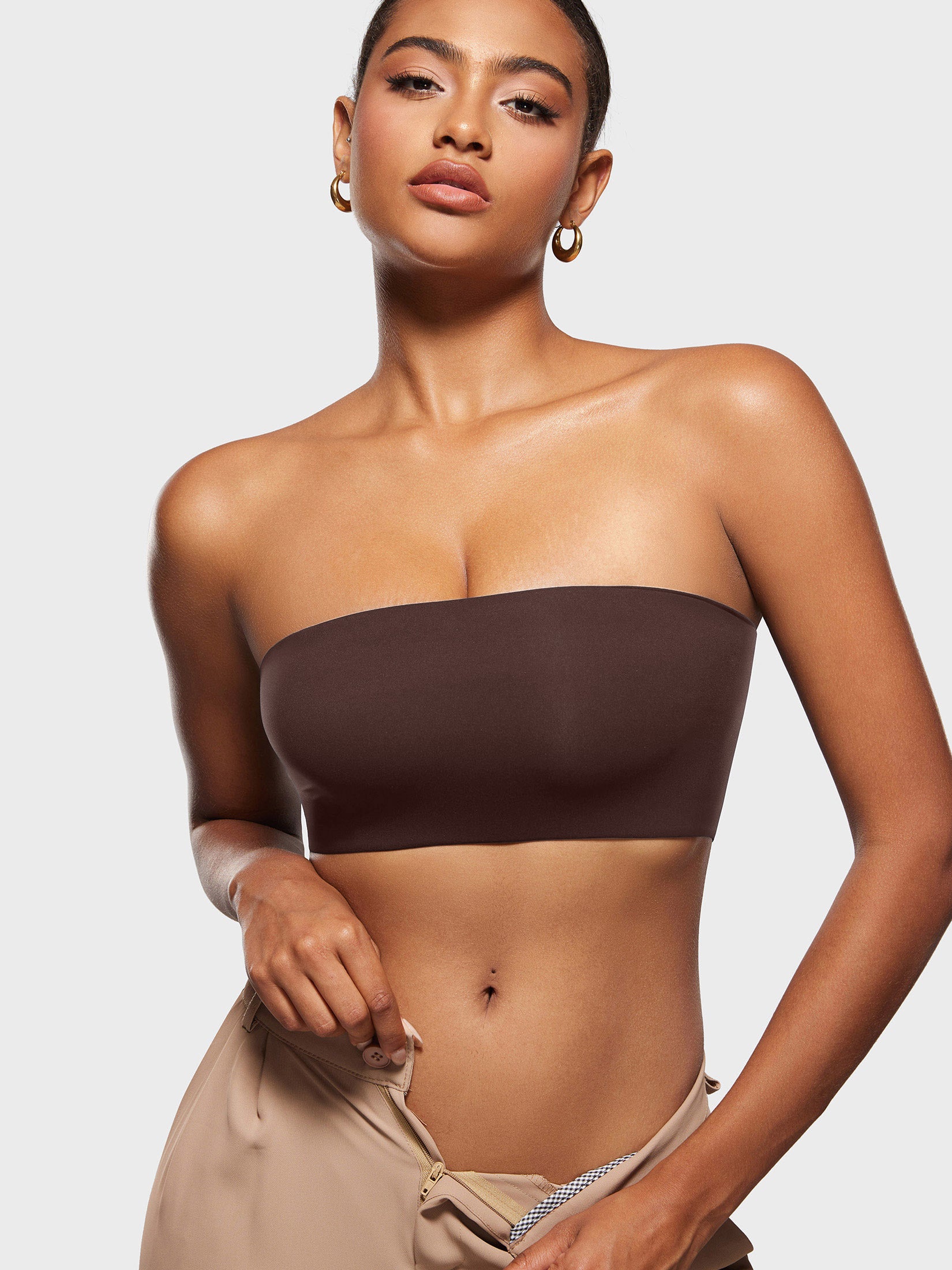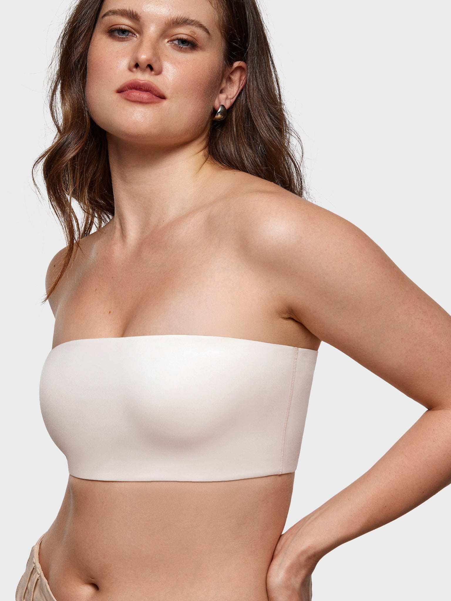 This strapless unlined bras for women is made of three-layered high-stretch fabric that stretch with your body and won't see through,with a mesh layer in the middle designed to provide better support and stability.