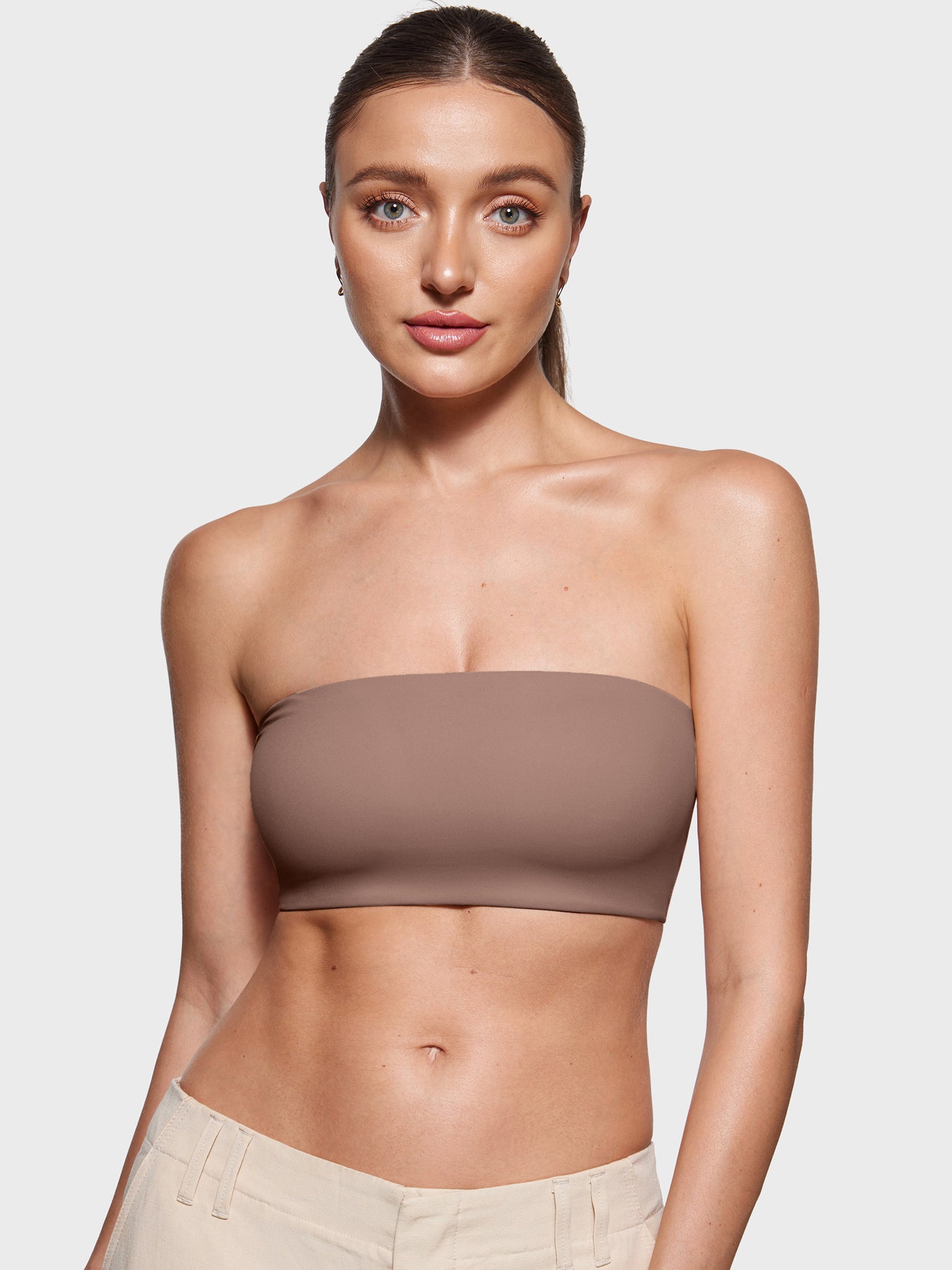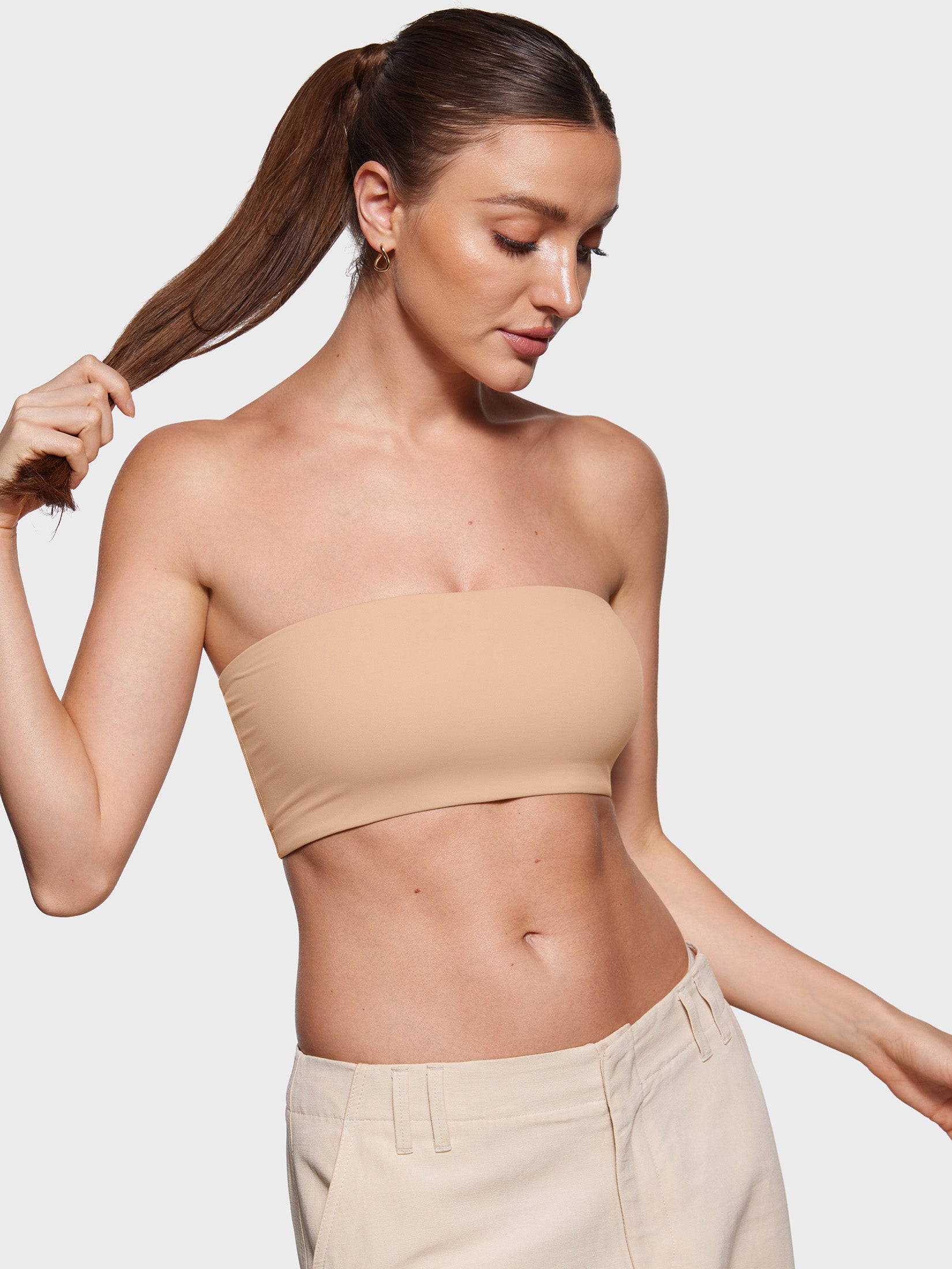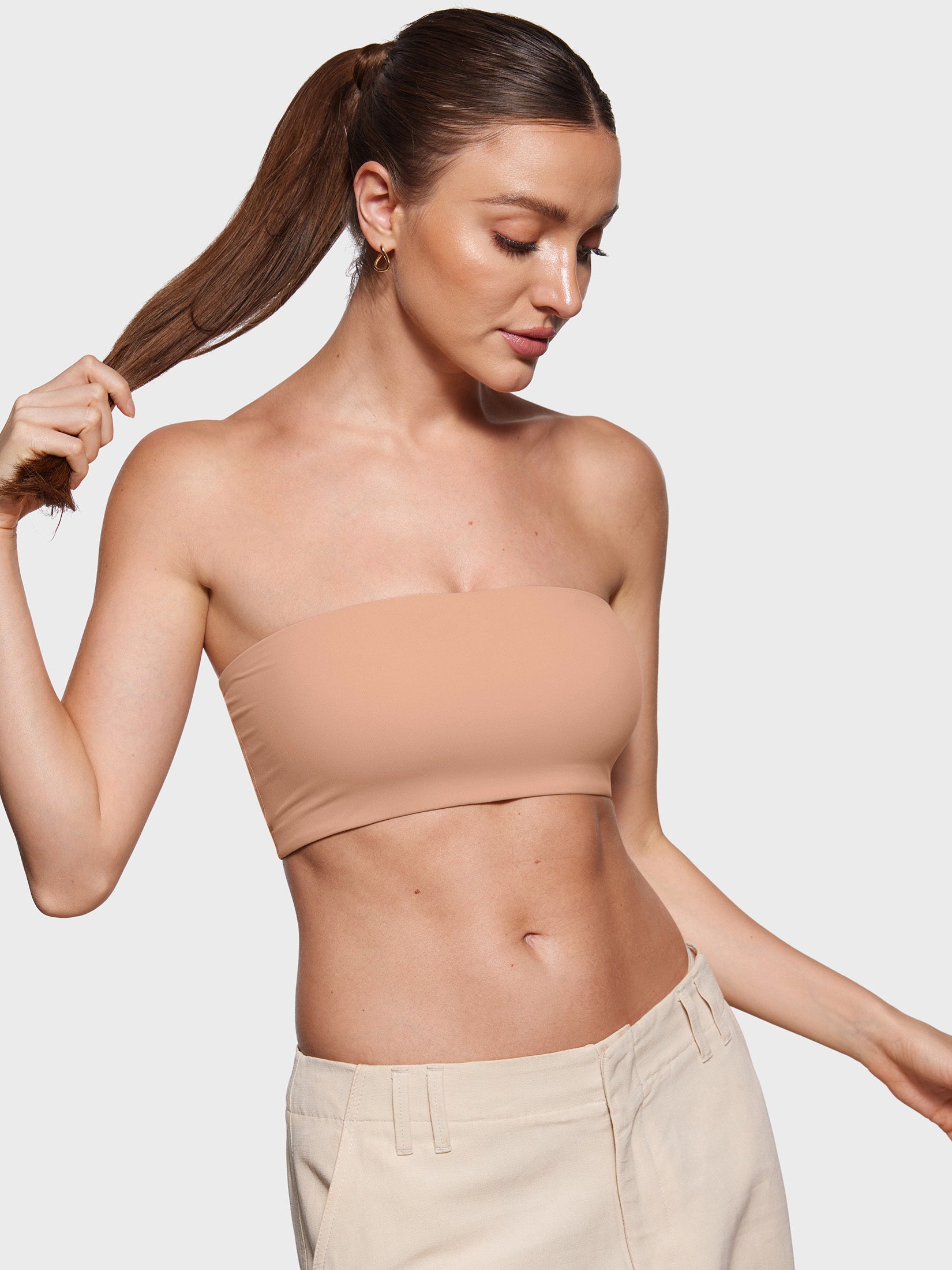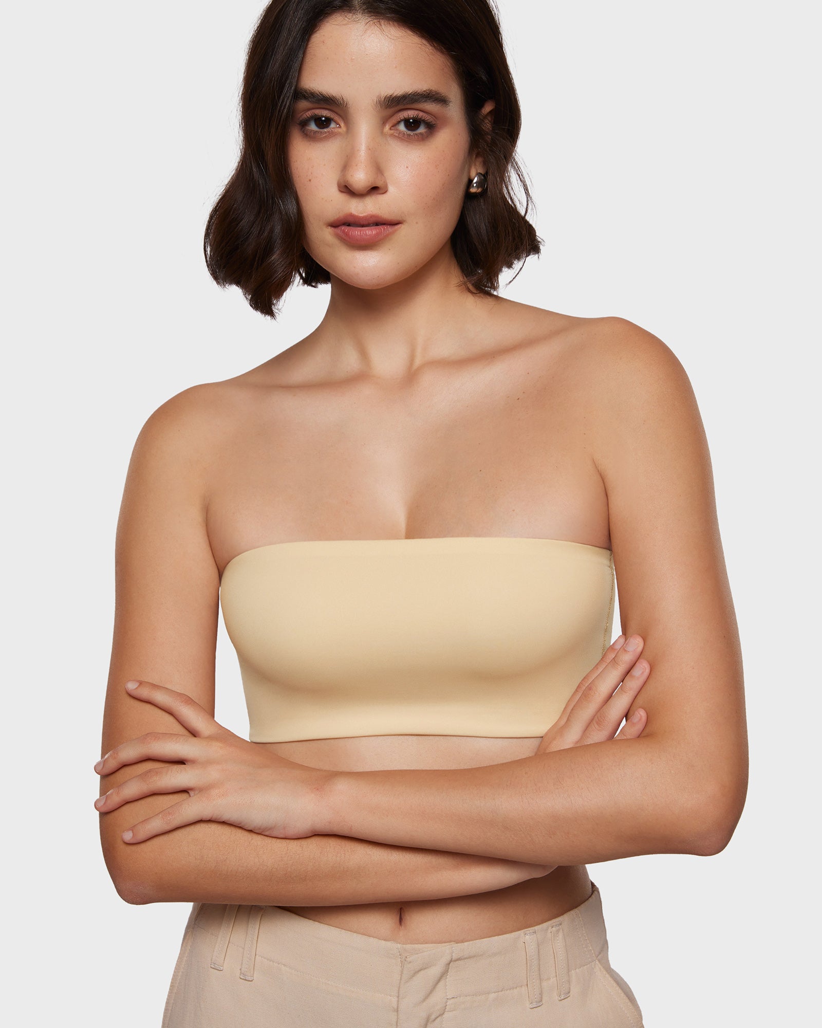 This strapless unlined bras for women is made of three-layered high-stretch fabric that stretch with your body and won't see through,with a mesh layer in the middle designed to provide better support and stability.