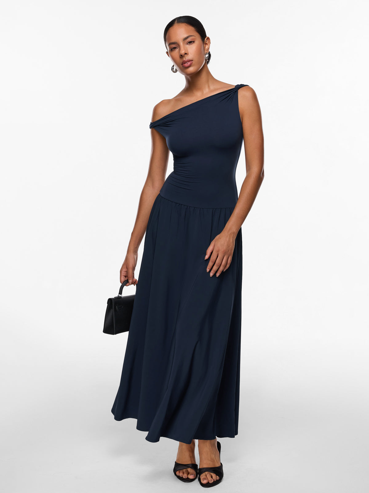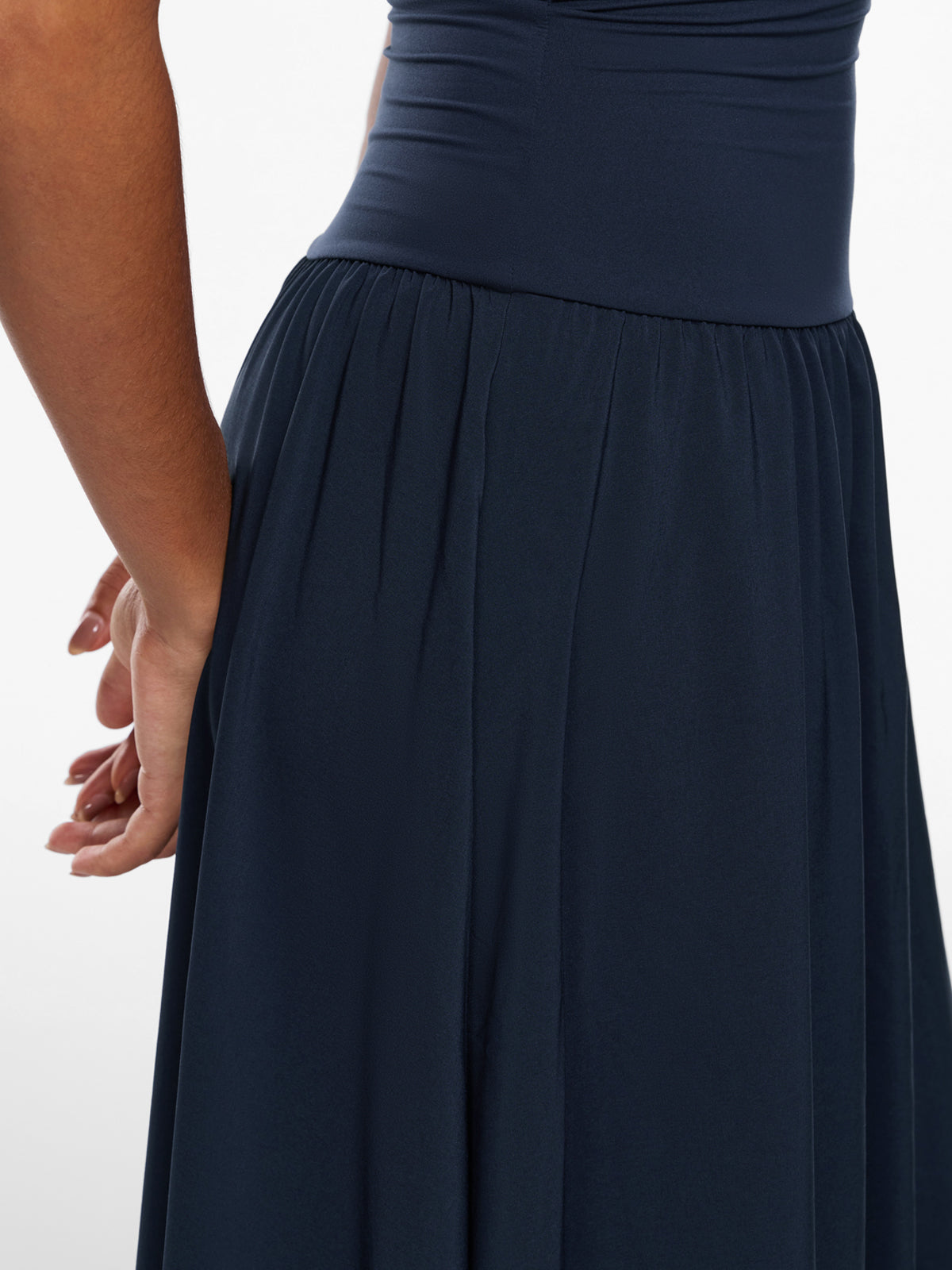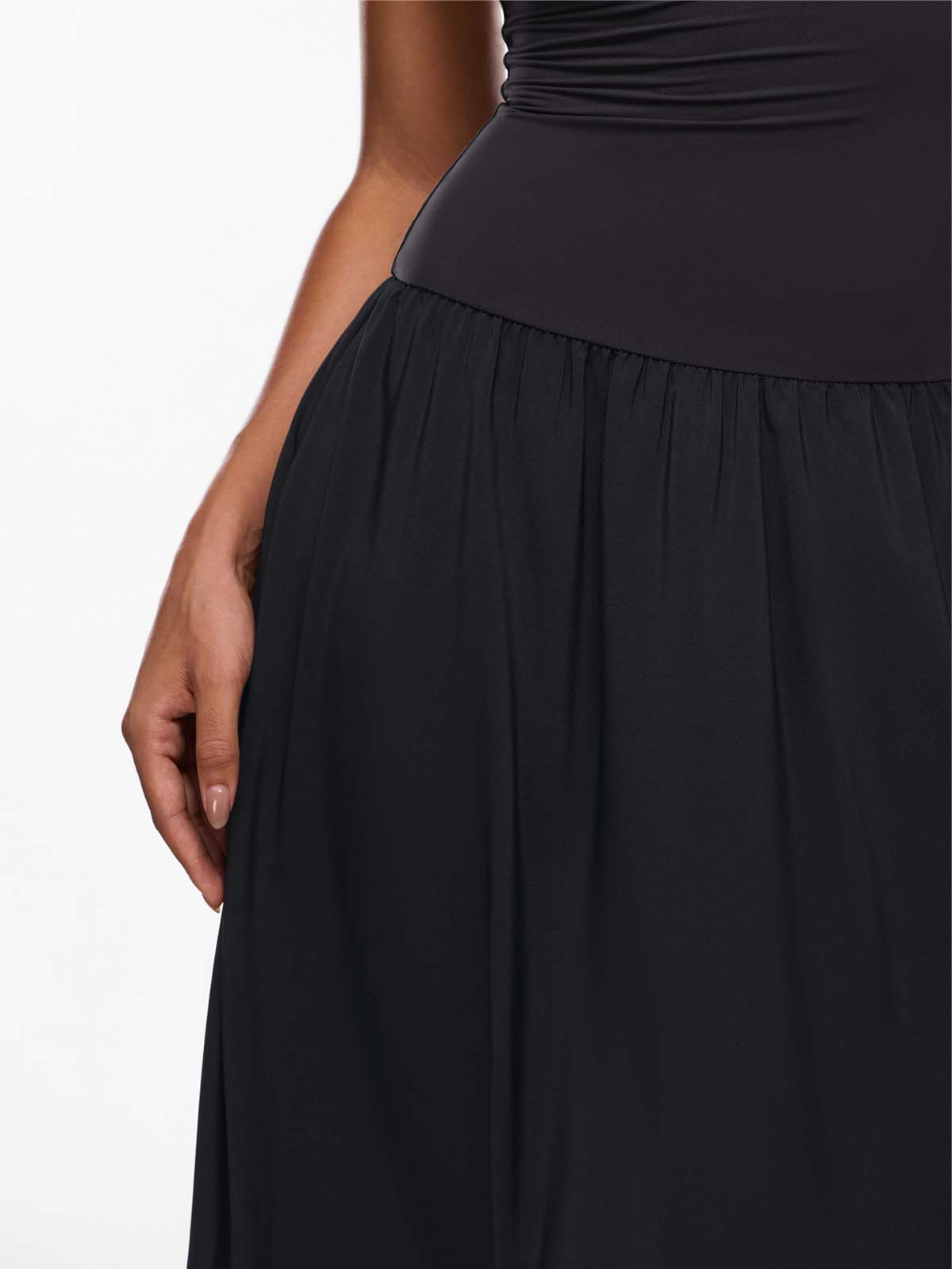 Discover the elegance of our versatile maxi dress. Designed with a double-layered, sculpting top and a flowing single-layer skirt, it beautifully flatters your curves. This ankle-length staple is perfect for any occasion, from work to an evening party. For a shorter fit, we recommend sizing down.