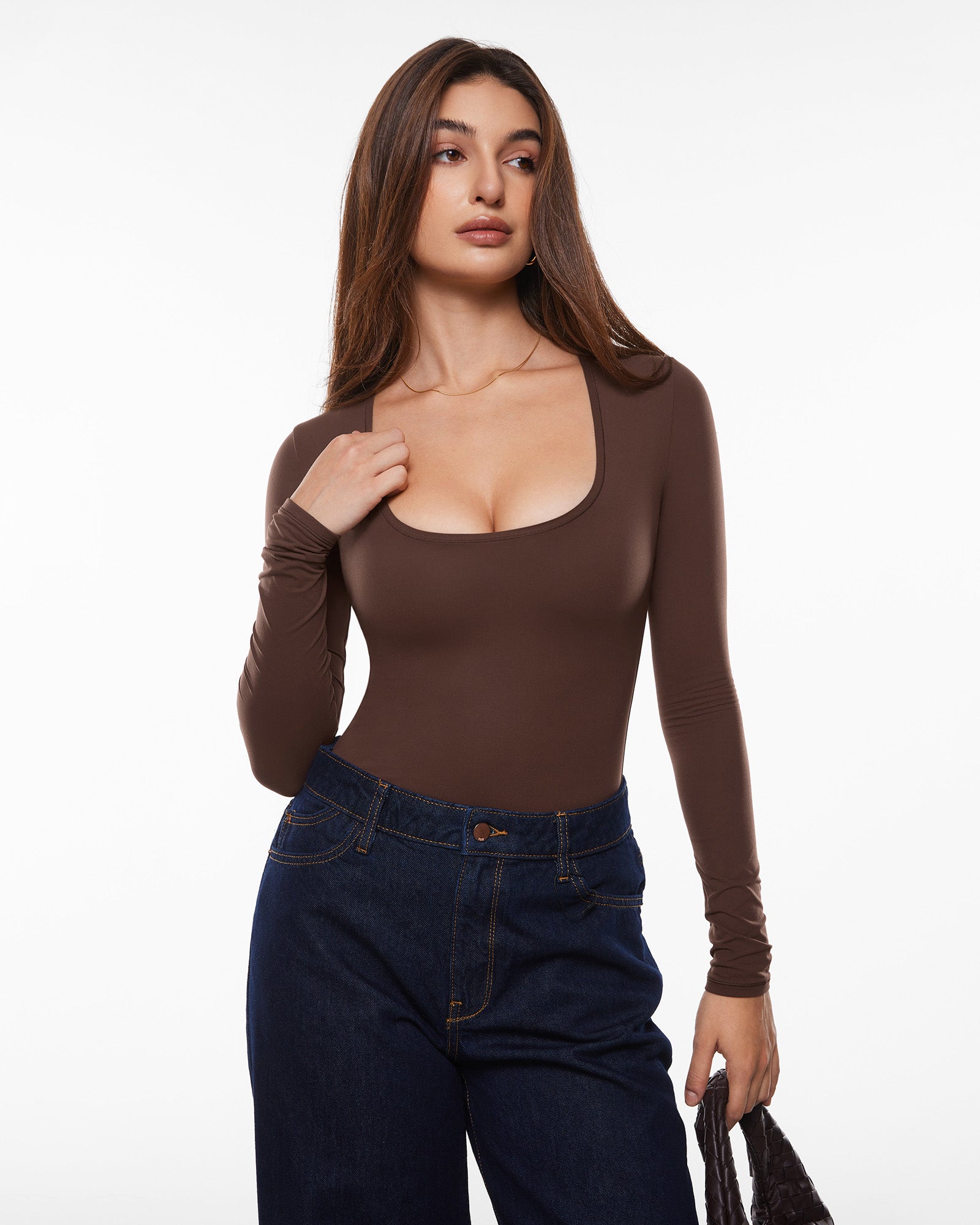 Inbarely® Soft Deep U Neck Long Sleeves Top - Double Lined